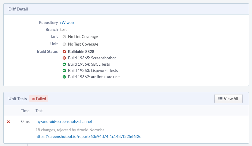 At the end of this set up, you’ll have a screenshotbot user on Phabricator that will block any diffs that have screenshot changes, until the changes have been reviewed.